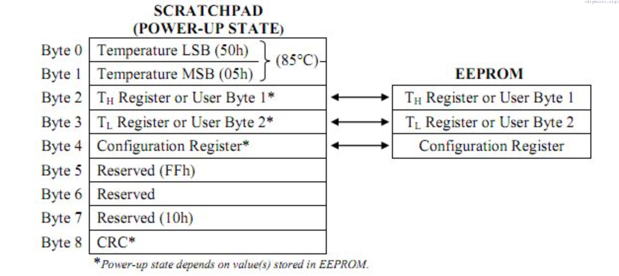 The register basically has just bits 5 and 6 for rewriting, not a lot of setups, huh. The default value for the sensor resolution is 12 bits, which corresponds to the 0.0625C degree accuracy, but there are some other possibilities: