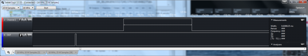 We initiate a 10us pulse on the Trig wire and waiting for a signal on the echo wire. Have to say that I was quite puzzled by two things: the picture above and the next lines from the datasheet: